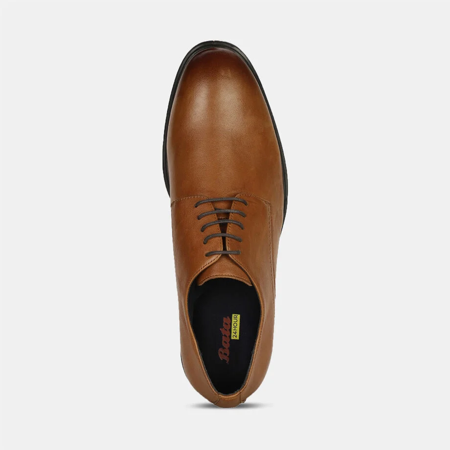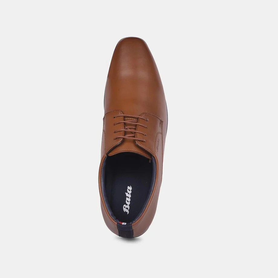 Bata tan leather formal derby-style shoes with lace-up closure for men