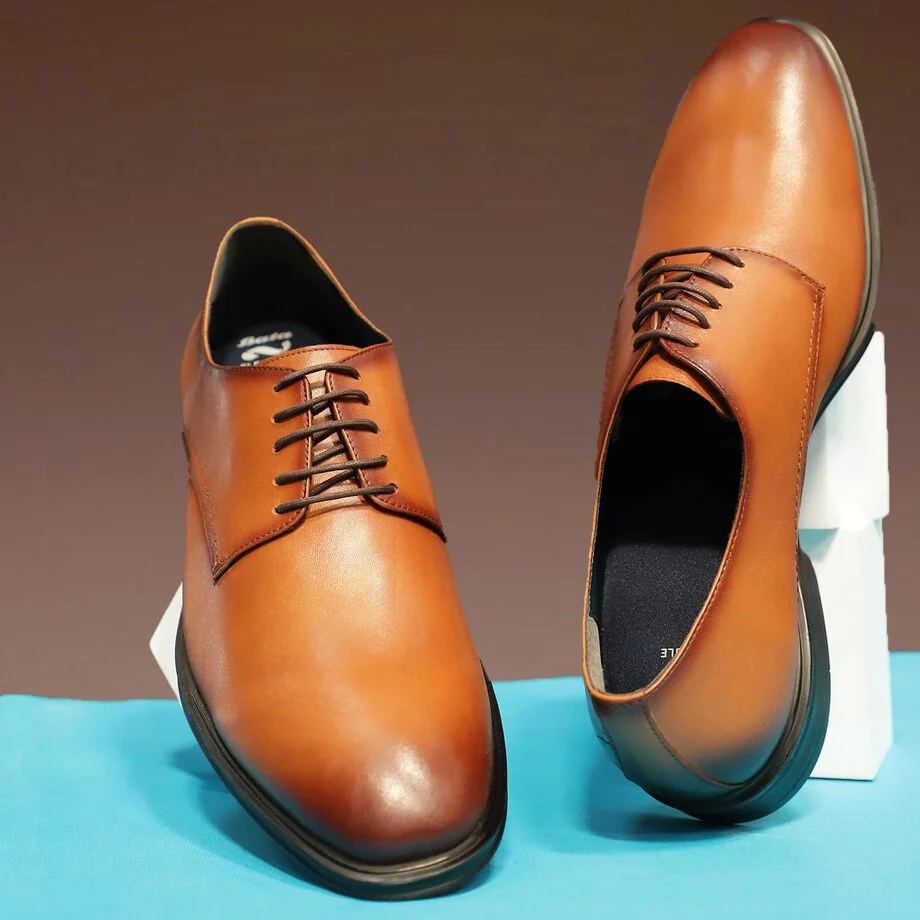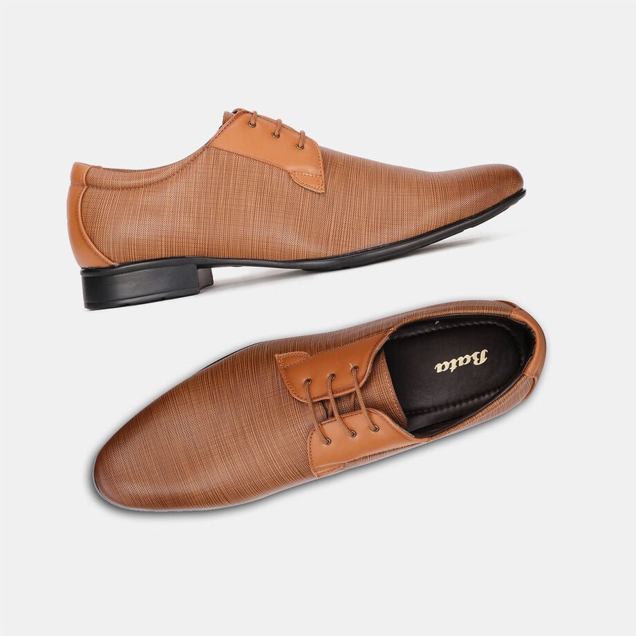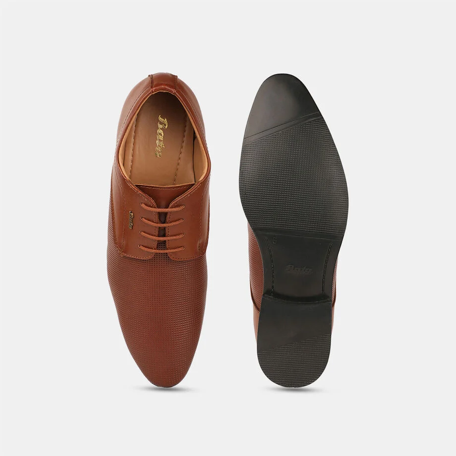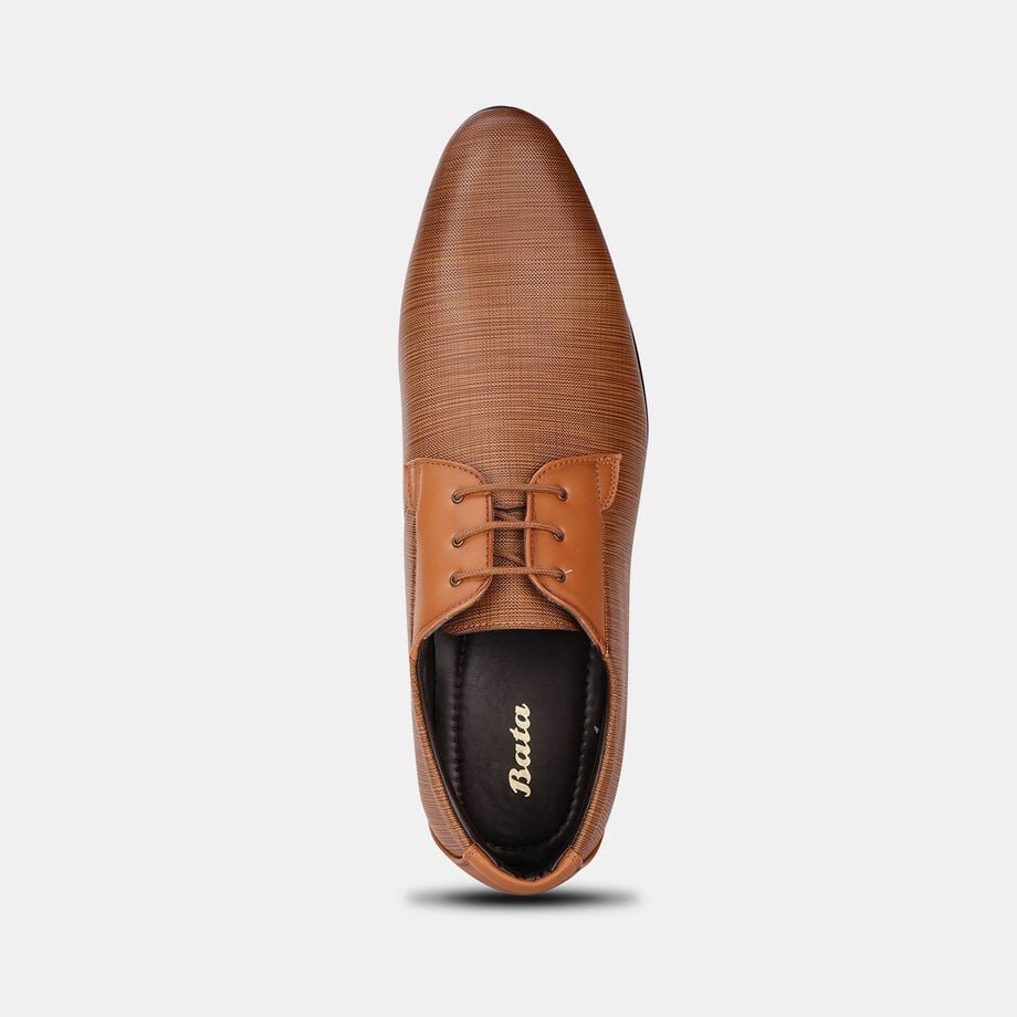 Bata tan formal derby-style shoes with lace-up closure for men