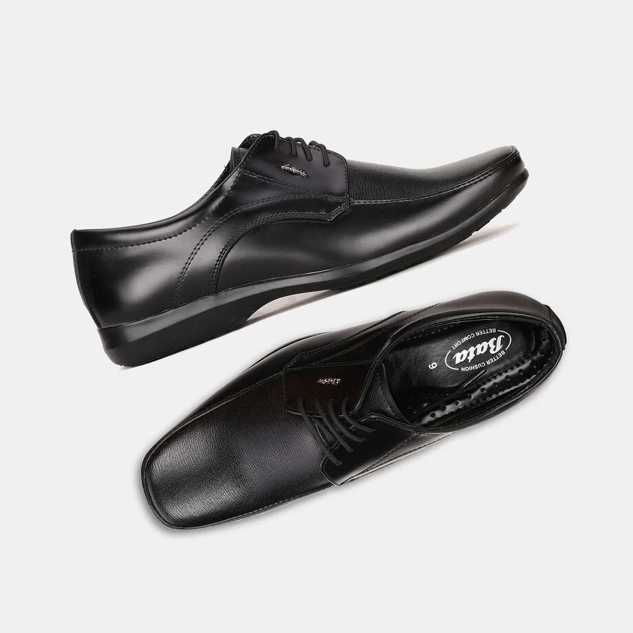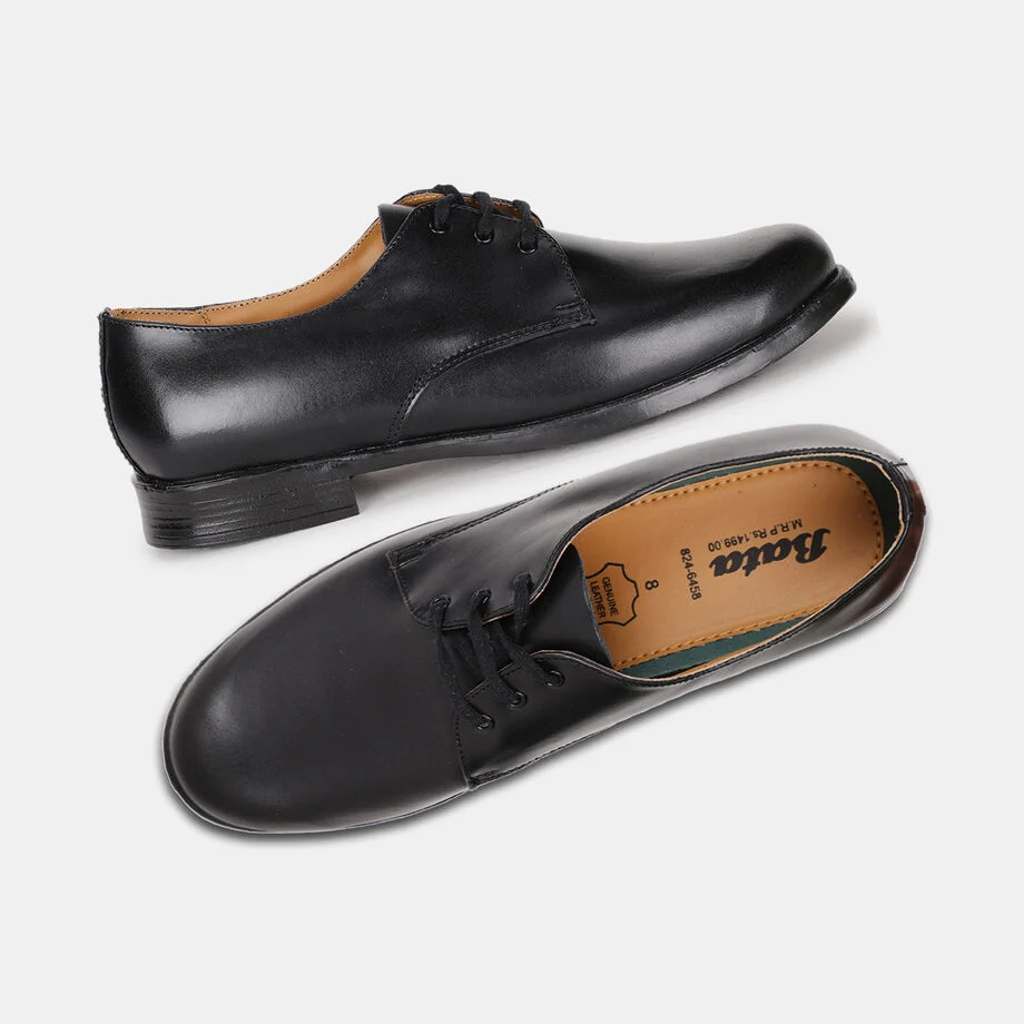 Bata black leather formal derby-style shoes for men