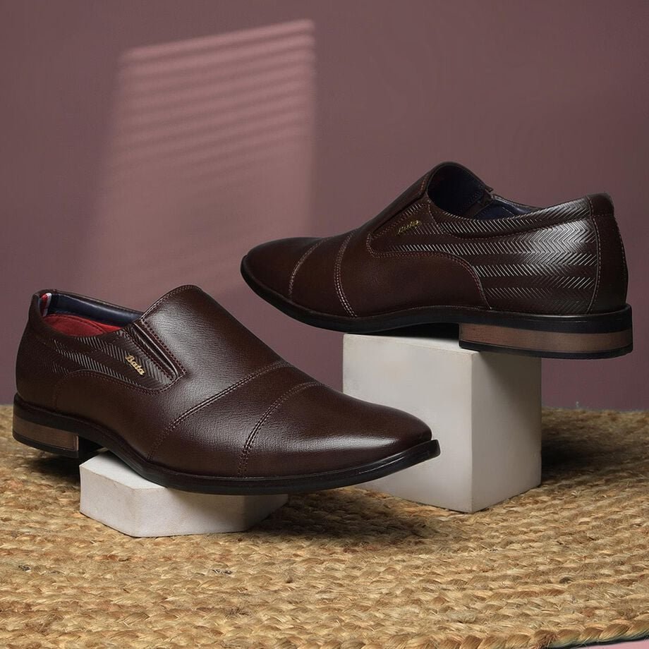 Bata Brown Formal Slip-On Shoes For Men