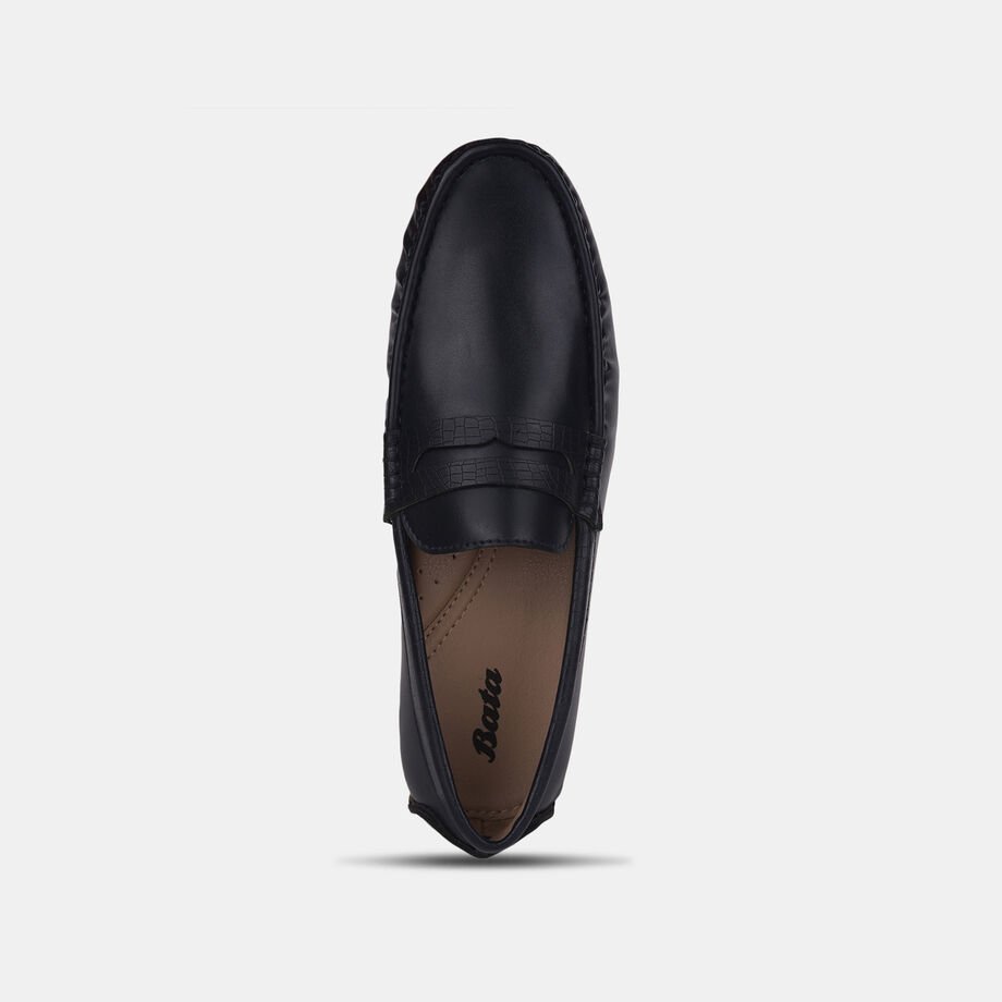 Bata black moccasins with lace-up detail for men