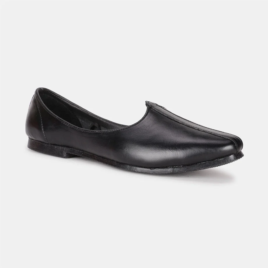 Bata black leather mojari-style shoes for men