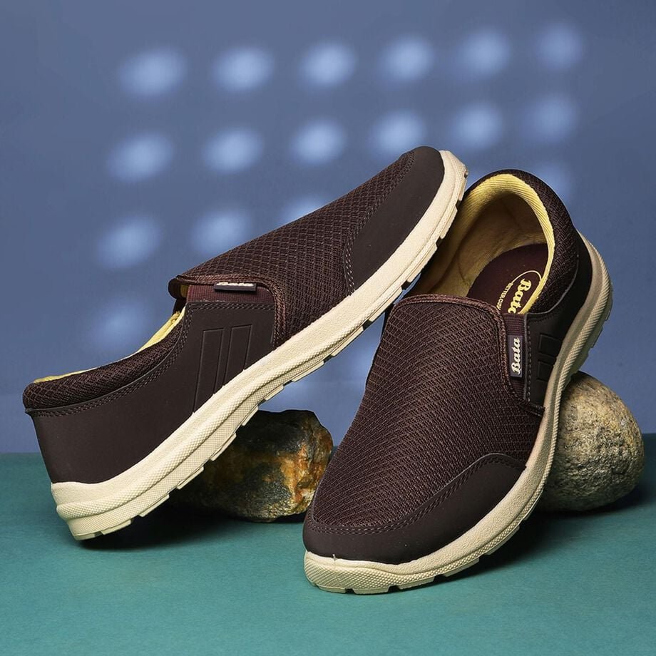 Bata dark brown mesh slip-on walking shoes for men
