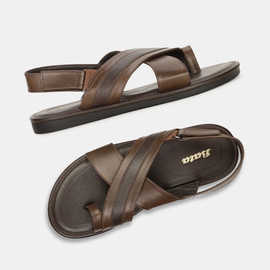Bata brown toe ring sandals for men