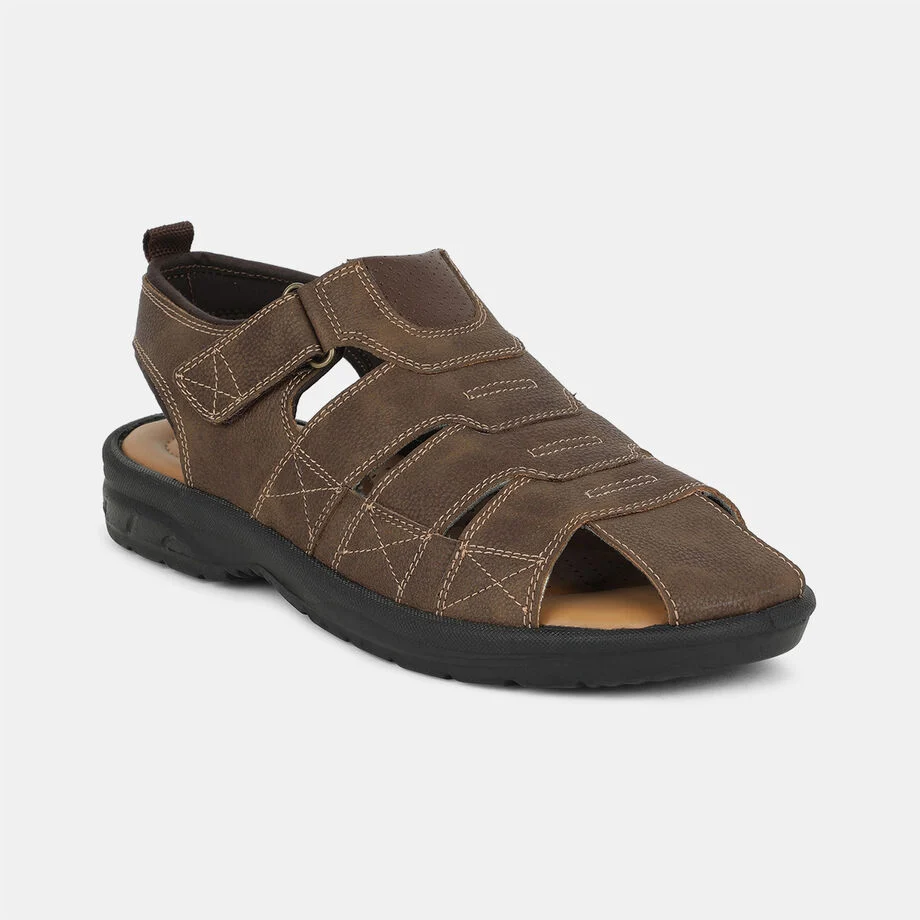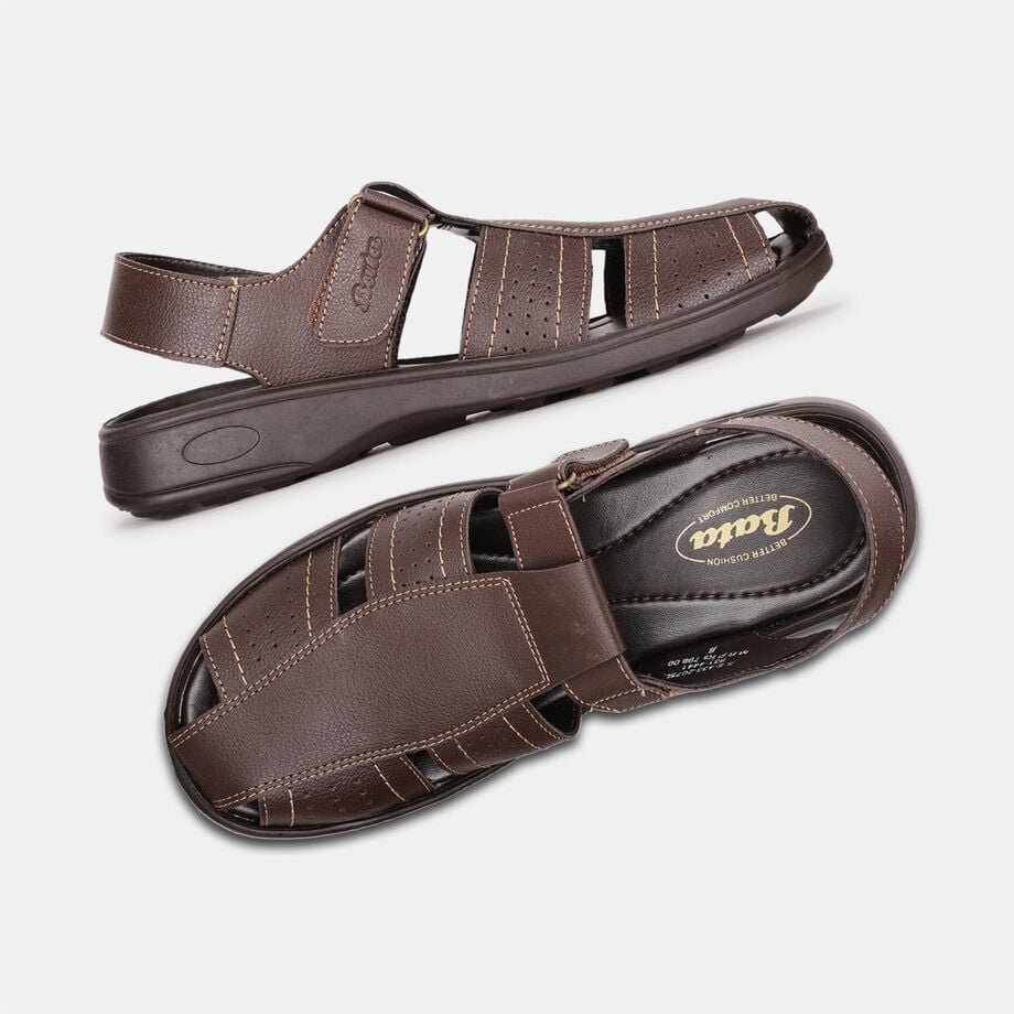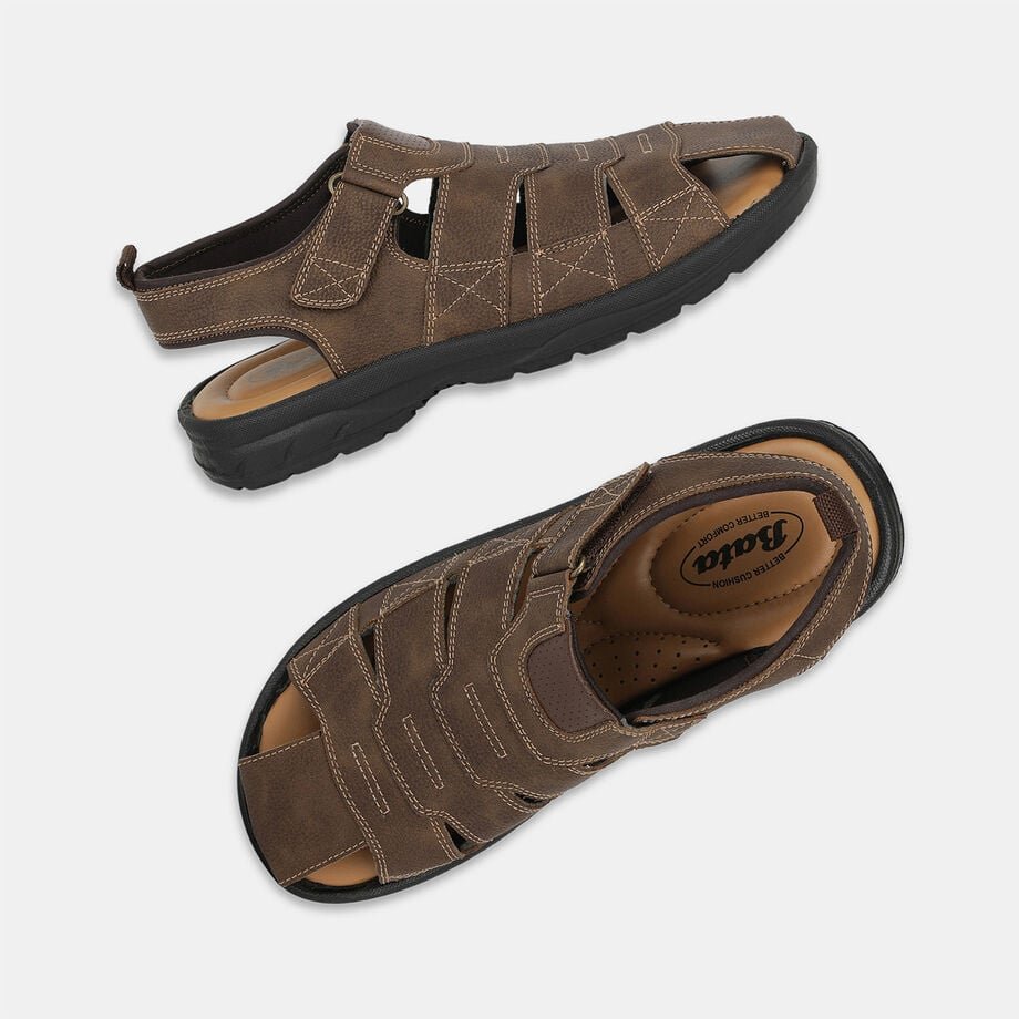 Bata dark brown fishermen sandals with velcro for men