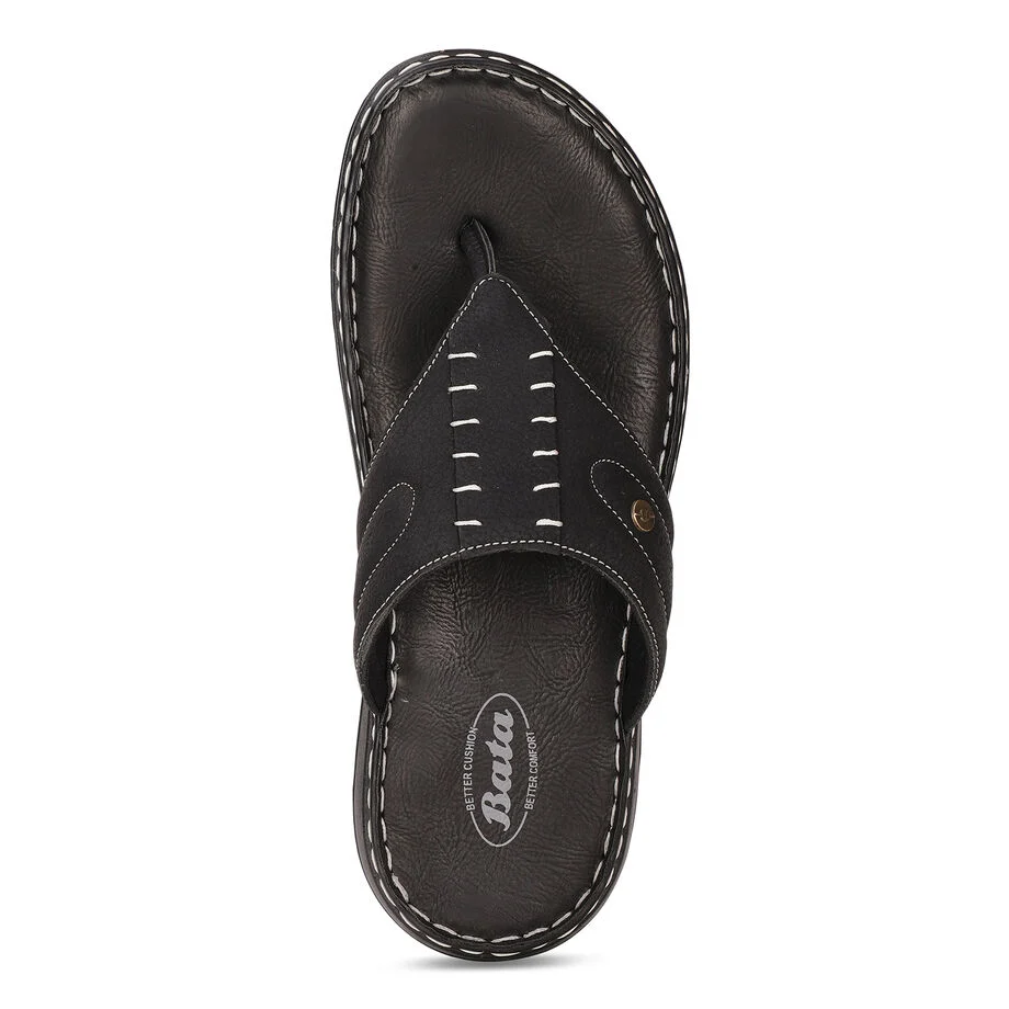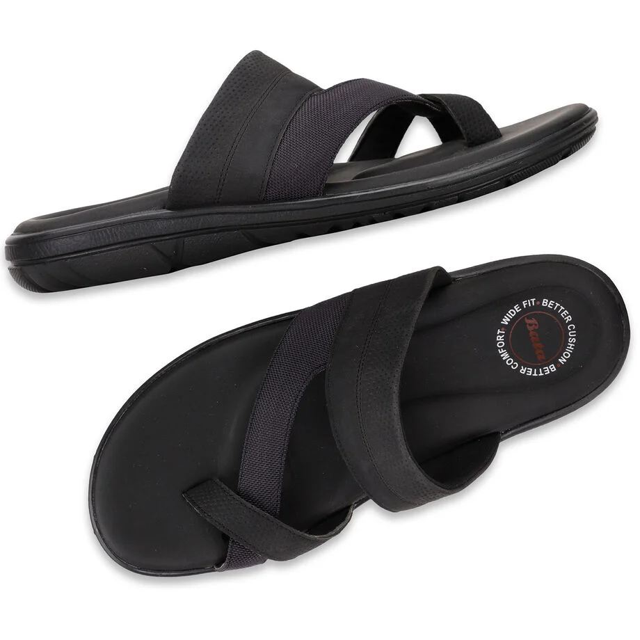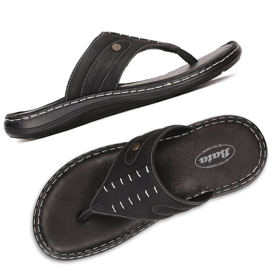 Bata black casual thong slippers for men