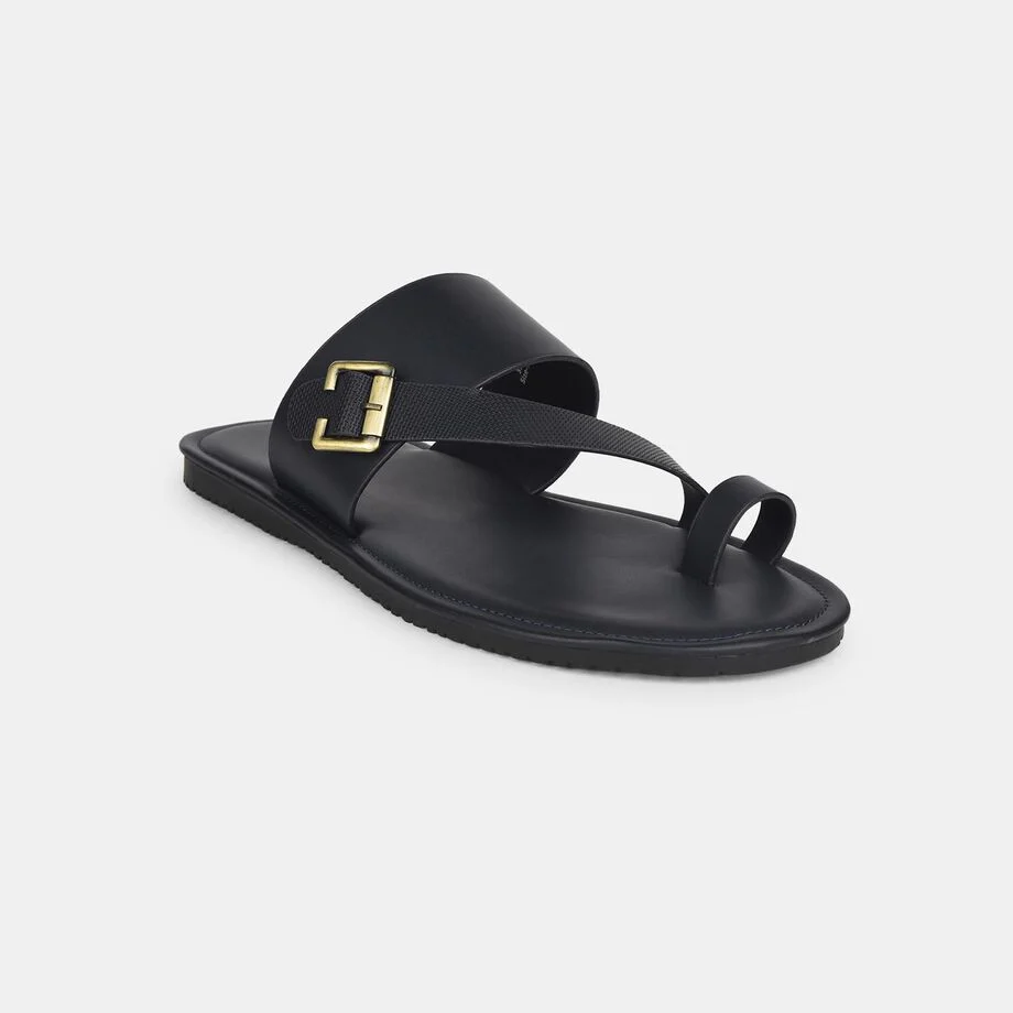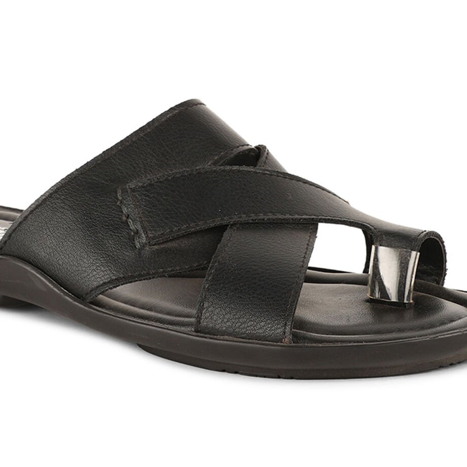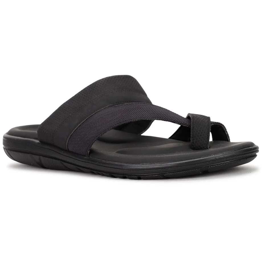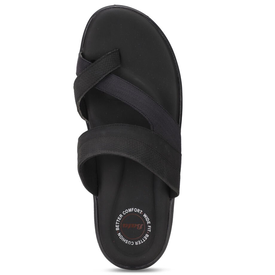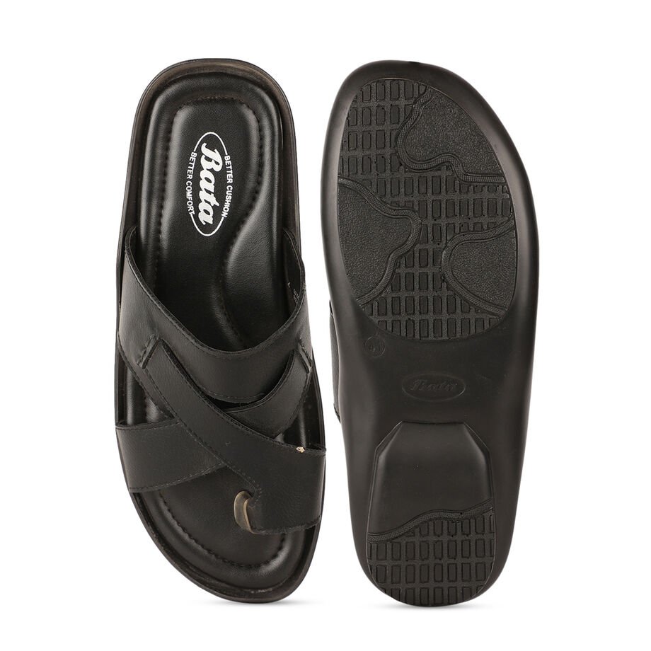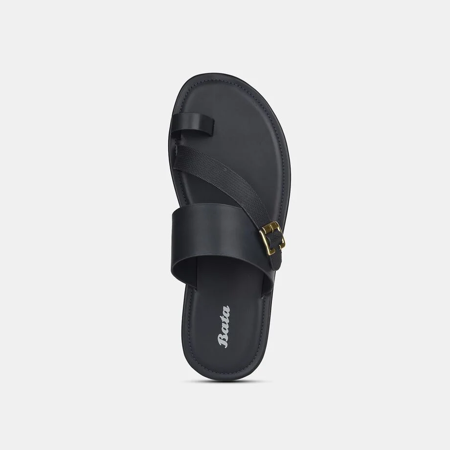 Bata black casual toe ring slippers for men