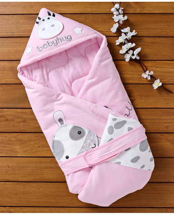 Babyhug Hooded Wrapper Cow Applique – Pink