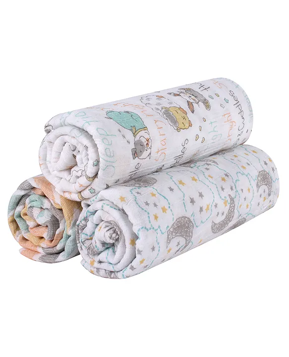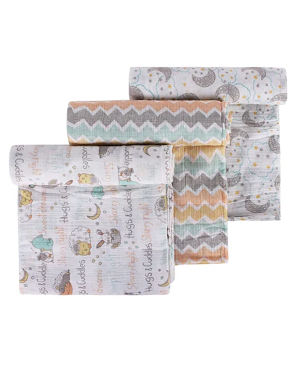 Abracadabra Cotton Muslin Swaddle for Newborns Sleepy Friends Pack of 3 – Multicolor