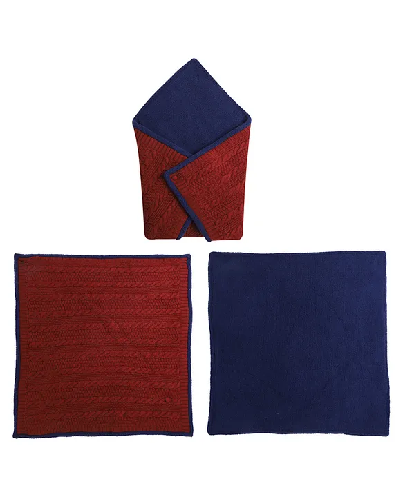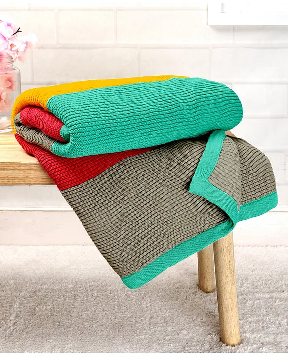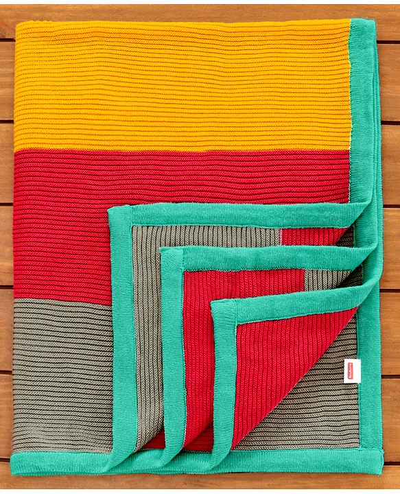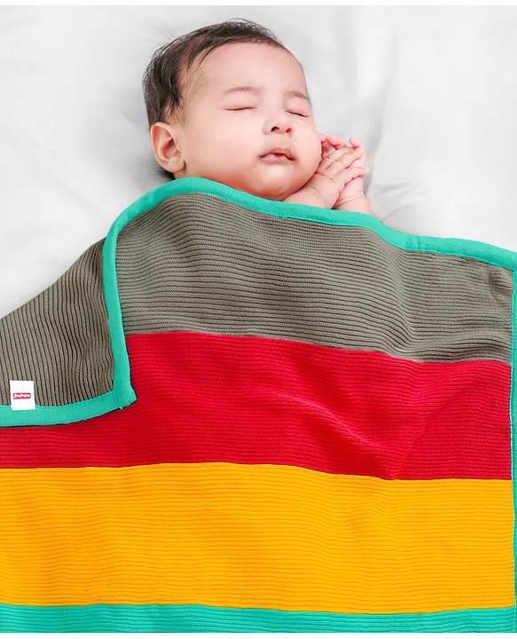 Babyhug Premium Cotton Knitted & Fur All Seasons Blanket – Blue
