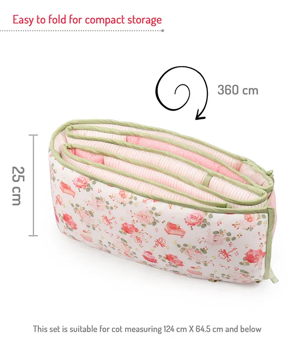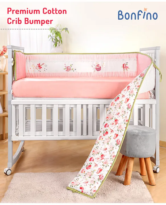 Bonfino Premium 100% Organic Cotton Crib Bumper Cupcake Print – Pink & White| Chemical-Free| Prevents Bumping into Crib| Compact Storage| Machine Washable