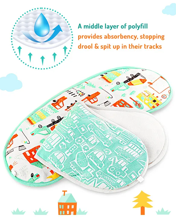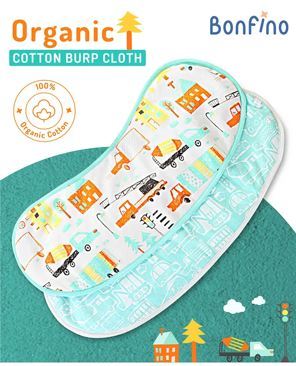 Bonfino Premium Cotton Burp Cloth Set Of 2 Transport Print – Blue