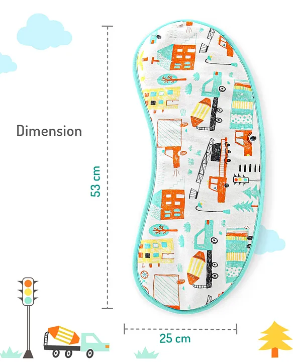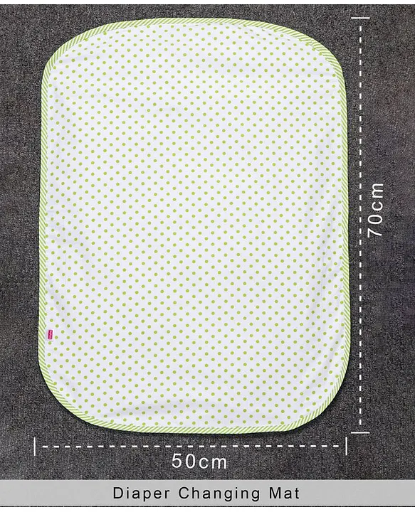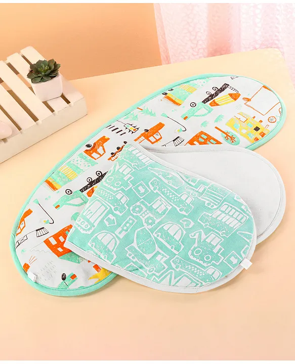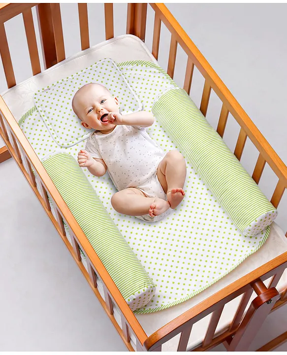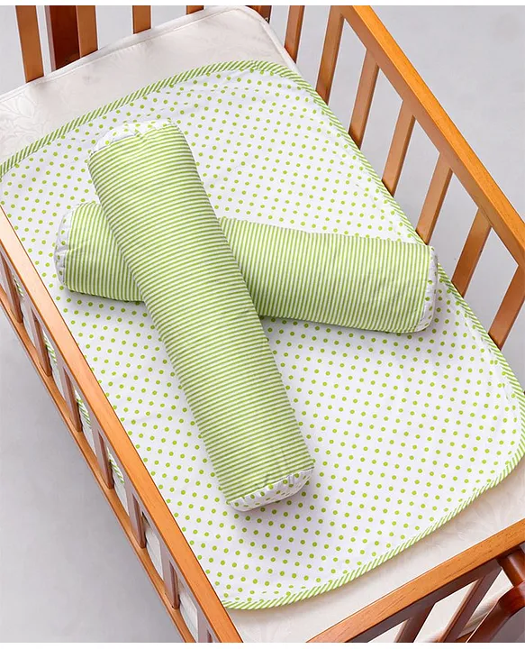 Babyhug 100% Premium Cotton Pillow Bolster & Diaper Changing Mat Set of 4- Polka Dots Green