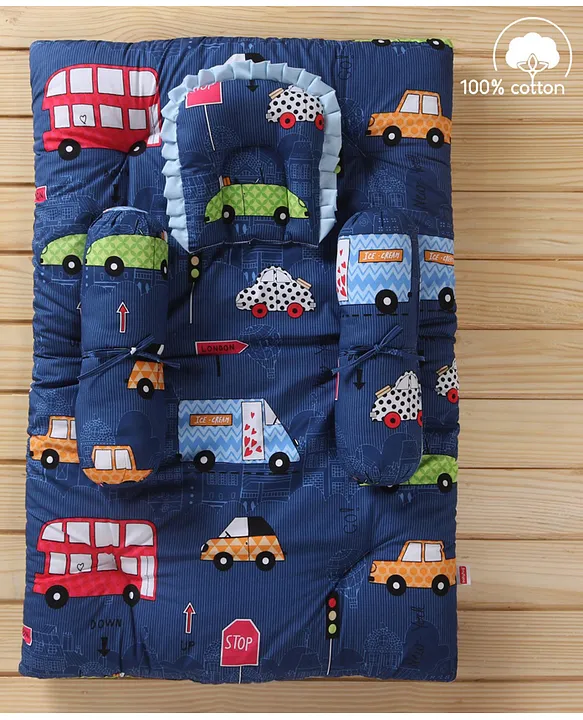 Babyhug Cotton Bedding Set Vehicle Print – Navy