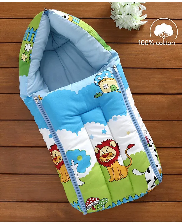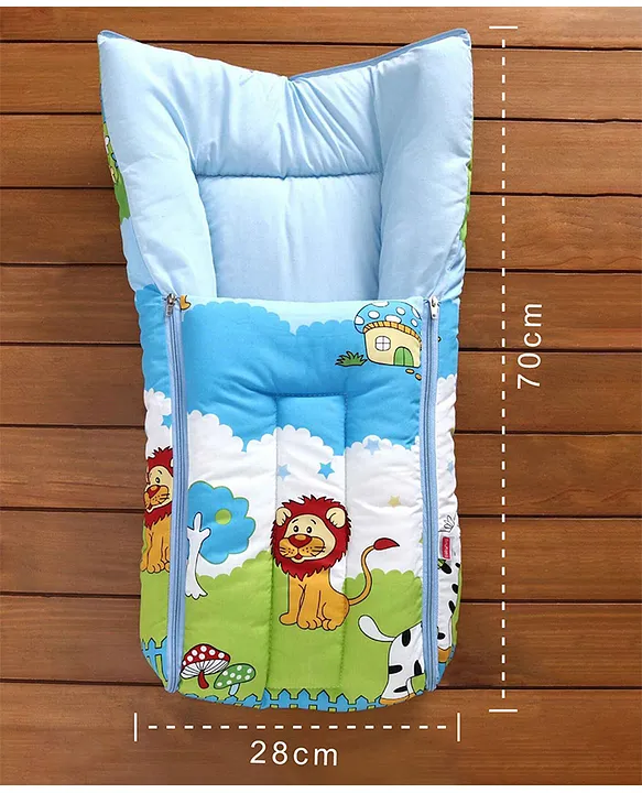 Babyhug Premium Cotton Baby Nest Bag Farm Theme – Yellow & Blue