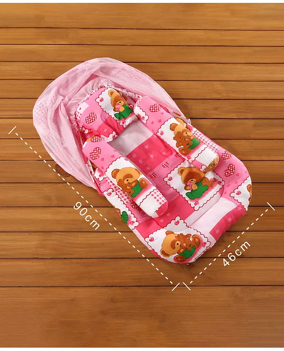Babyhug Teddy Print Baby Jumbo Bedding Set With Mosquito Net – Pink