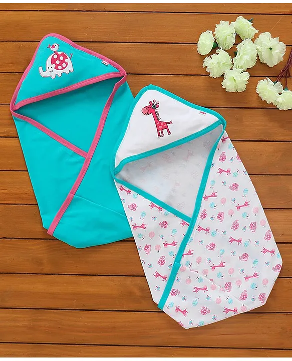 Babyhug Hooded Wrapper Giraffe Print Pack of 2 – Blue and White