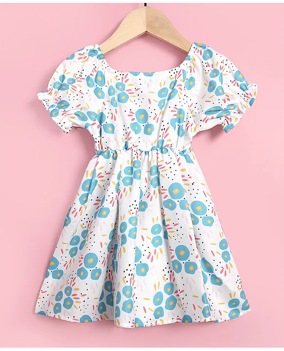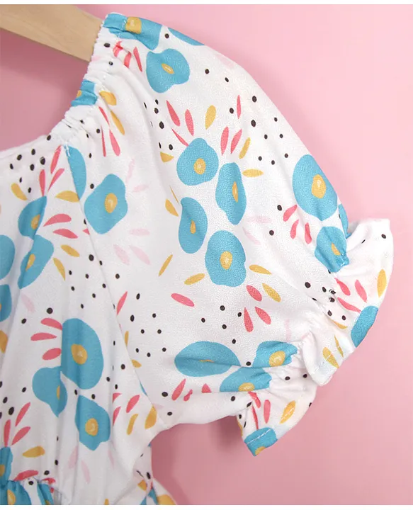 Kookie Kids Short Sleeves Frock Floral Print – White