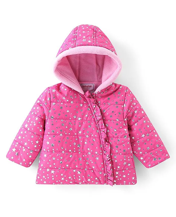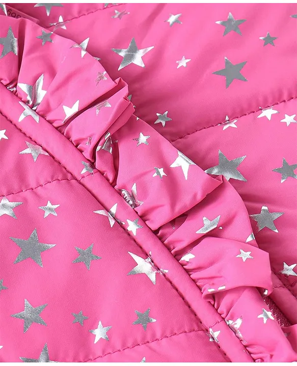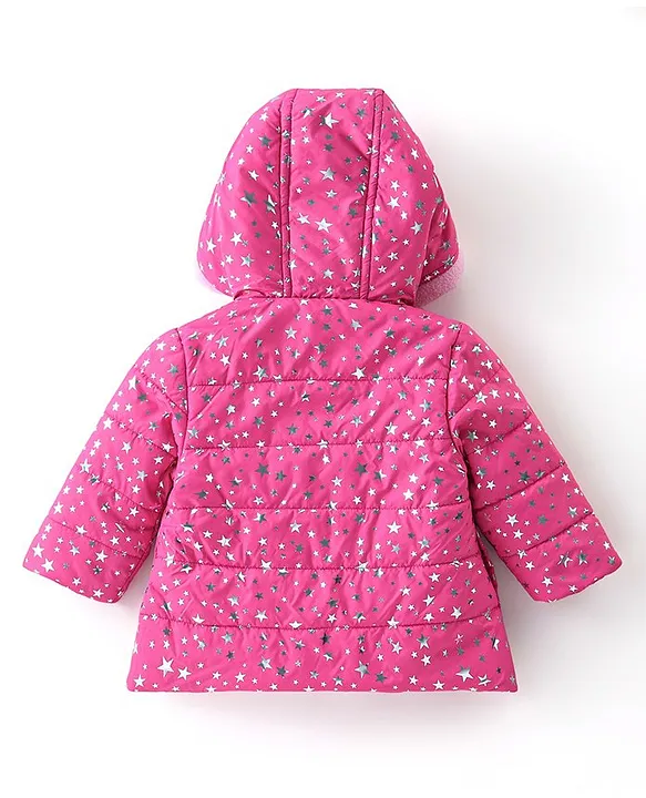 Babyhug Full Sleeves Hoodies Foil Stars Print- Pink