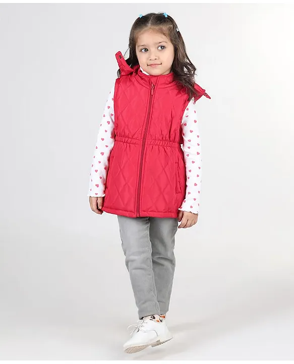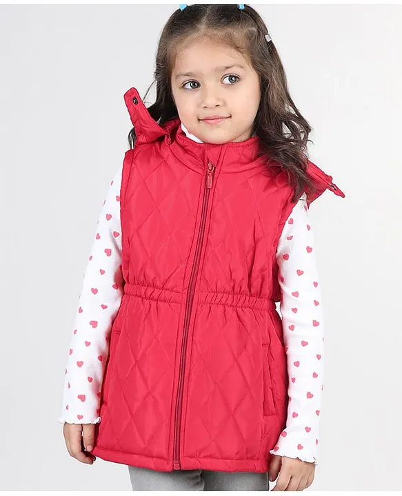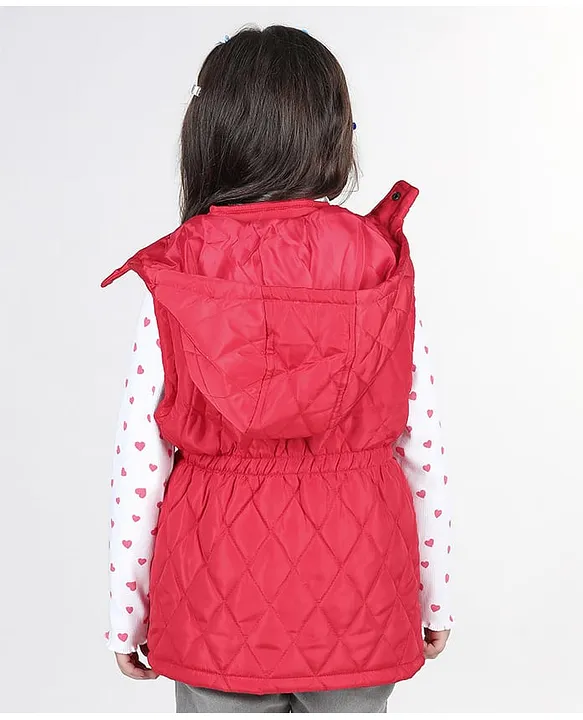 Babyhug Sleeveless Solid Colour Jacket with Removable Hood & Pocket Detailing – Red