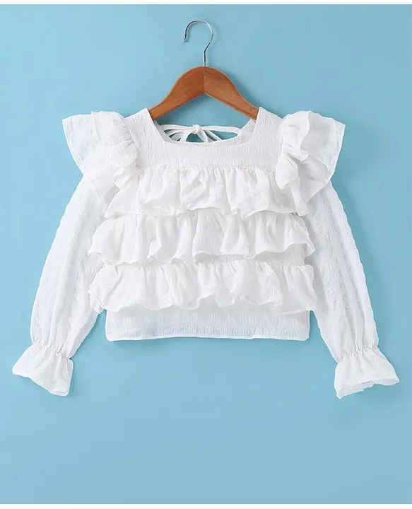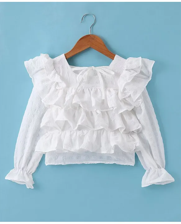 Kookie Kids Full Sleeves Top with Frill Detailing – White