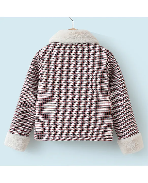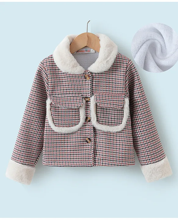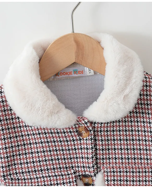 Kookie Kids Full Sleeves Collared Neck Winter Jacket With Checks Design – Brown