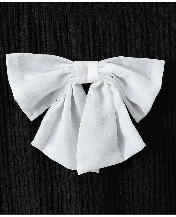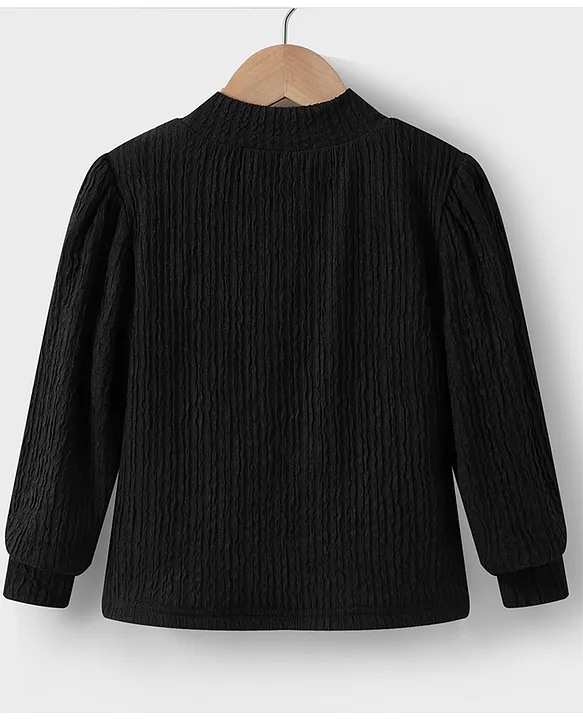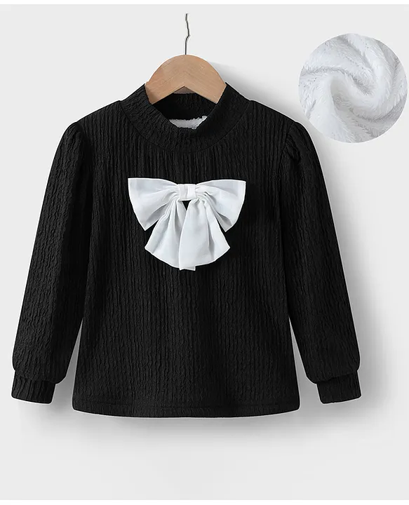 Kookie Kids Full Sleeves Winter Wear High Neck T-Shirt With Bow Applique – Black