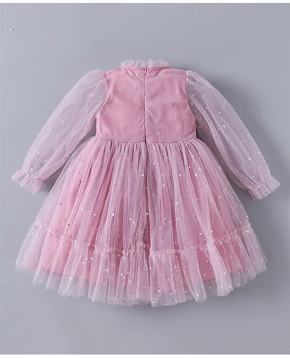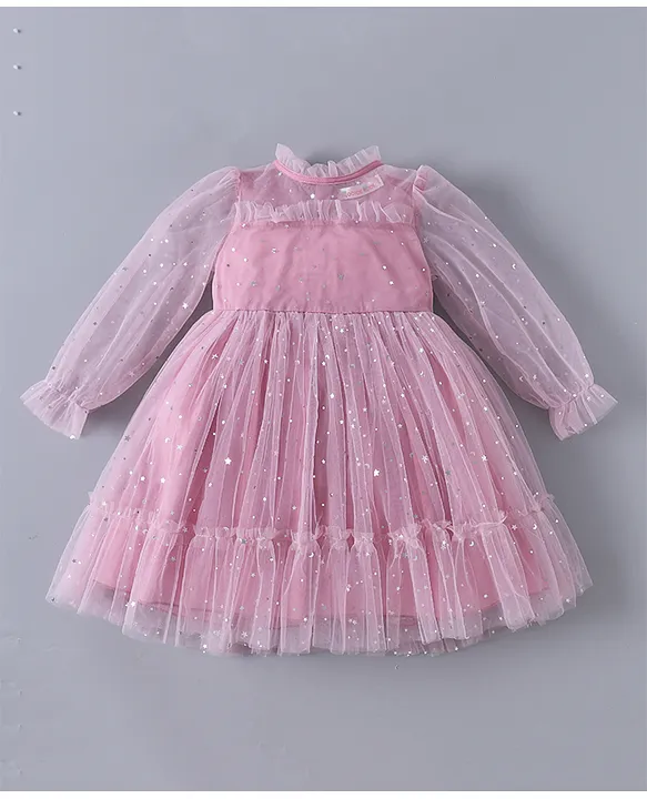 Kookie Kids Full Sleeves Star Printed Party Frock – Mauve