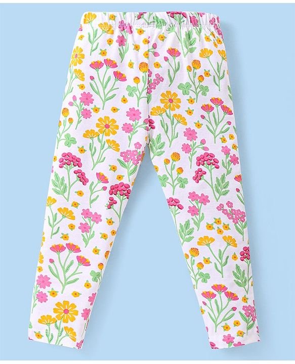 Babyhug Cotton Knit Full Sleeves Schiffli & Lace Detailed Top With Floral Printed Leggings – Yellow