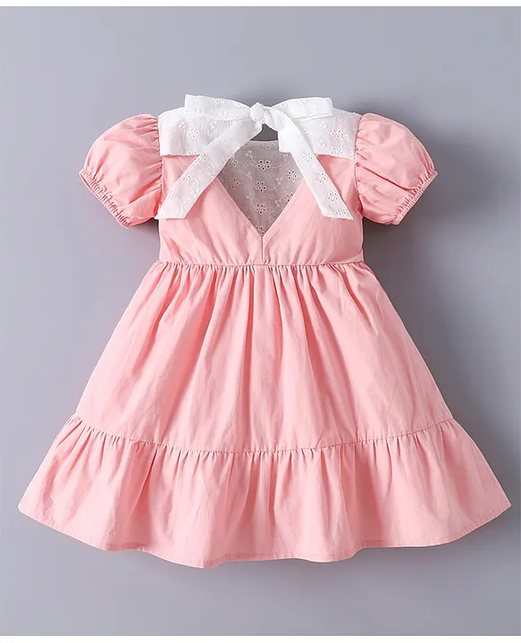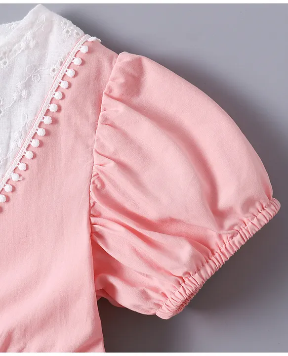 Mark & Mia Cotton Half Puffed Sleeves Frock with Lace Detailing – Pink