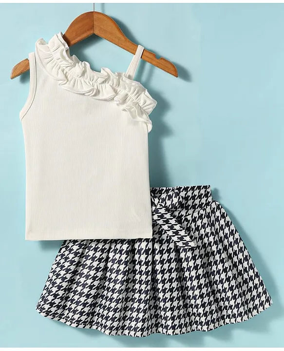 Mark & Mia Woven Sleeveless Top & Printed Skirt with Frill Detailing – White & Navy Blue