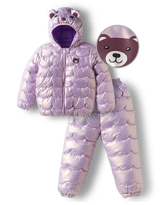 Mark & Mia Full Sleeves Hooded Winter Wear Suits Set with Bear Ear Applique – Purple