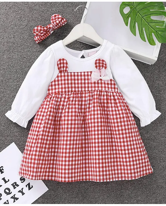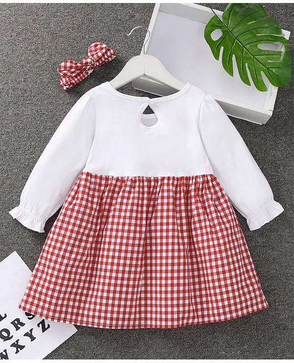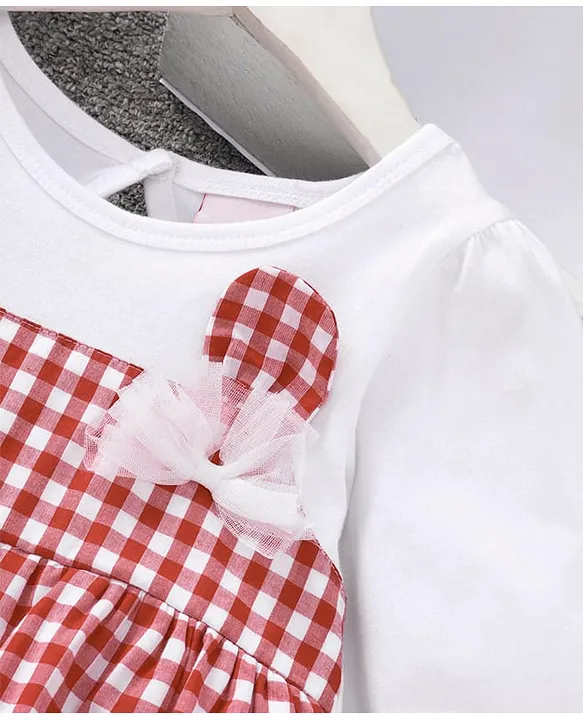 Mark & Mia Full Sleeves Checks Frock Dress With Bow Detailing – Red & White