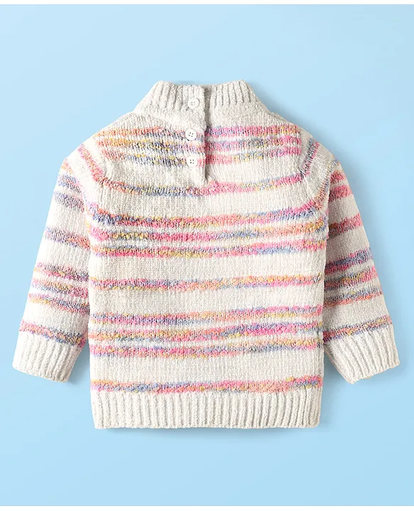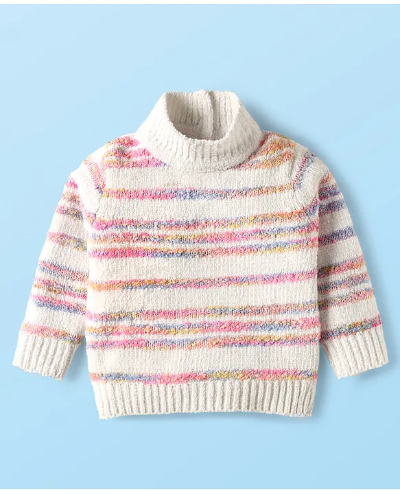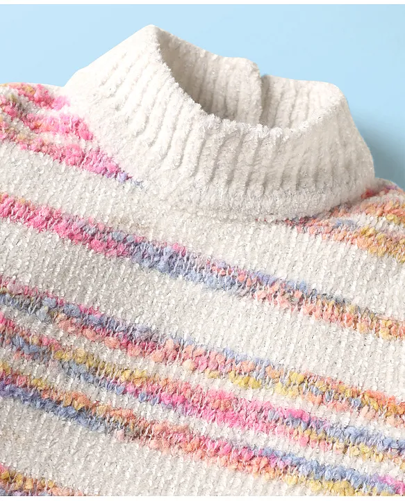 Babyhug Knitted Full Sleeves High Neck Striped Pullover Sweater – White