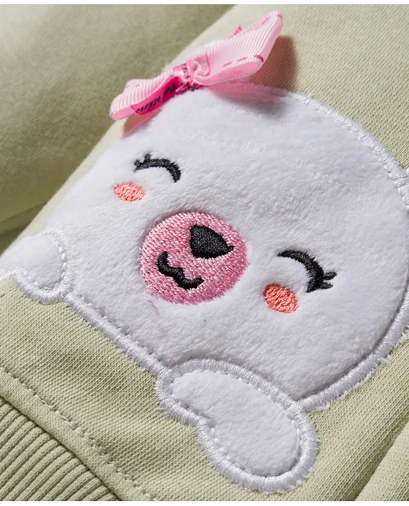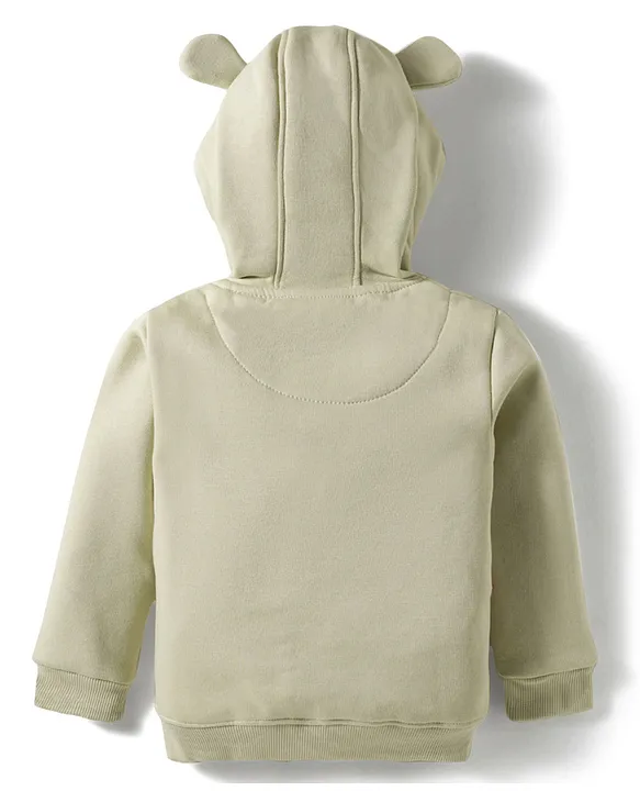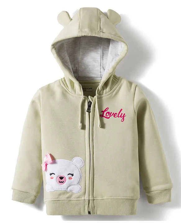 Bodycare Fleece Knit Full Sleeves Hooded Sweatjacket With Bear Embroidery Patch & Ear Applique – Light Green