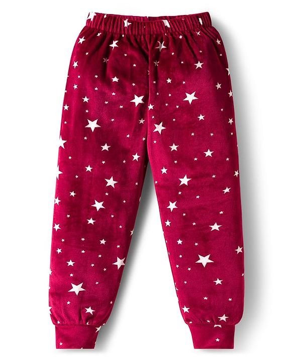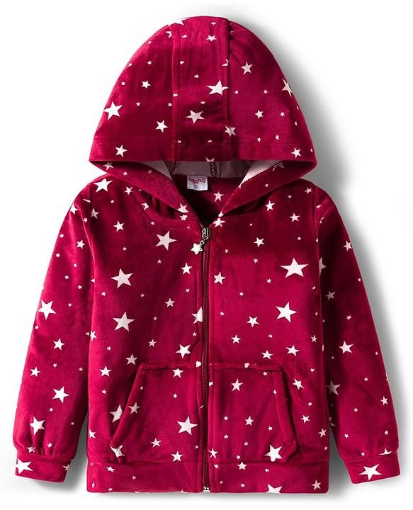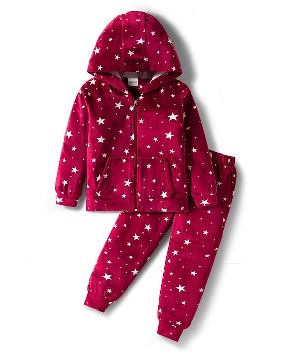 Babyhug Velour Woven Full Sleeves Co-ords Hooded Winter Wear Suit with Star Print – Red