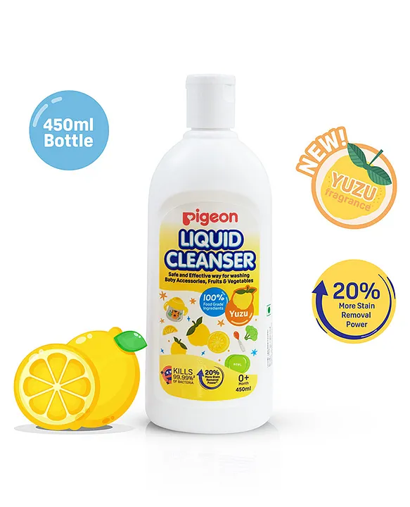 Pigeon Feeding Bottle Accessories & Vegetables Liquid Cleanser Bottle, Effective Disinfectant with yuzu fragrance – 450 ml