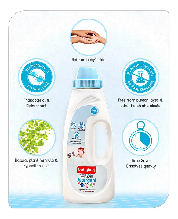 Babyhug Plant-Based Liquid Laundry Detergent for Babies Natural & Gentle Fabric Cleaner 550 ml| Anti Bacterial| Hypoallergenic Ingredients| Mildly Scented| For Both Hand & Machine Wash