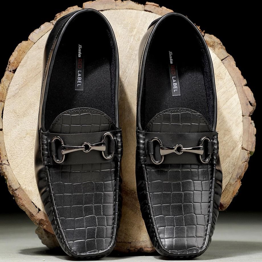 Bata red label black casual slip-on shoes for men