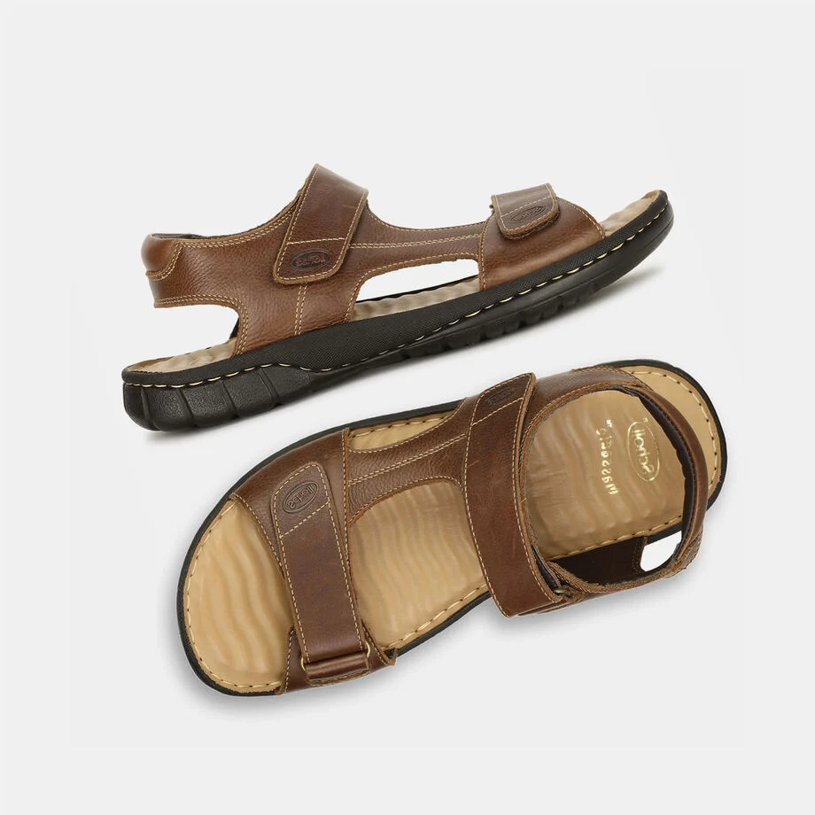 Scholl brown leather casual sandals for men